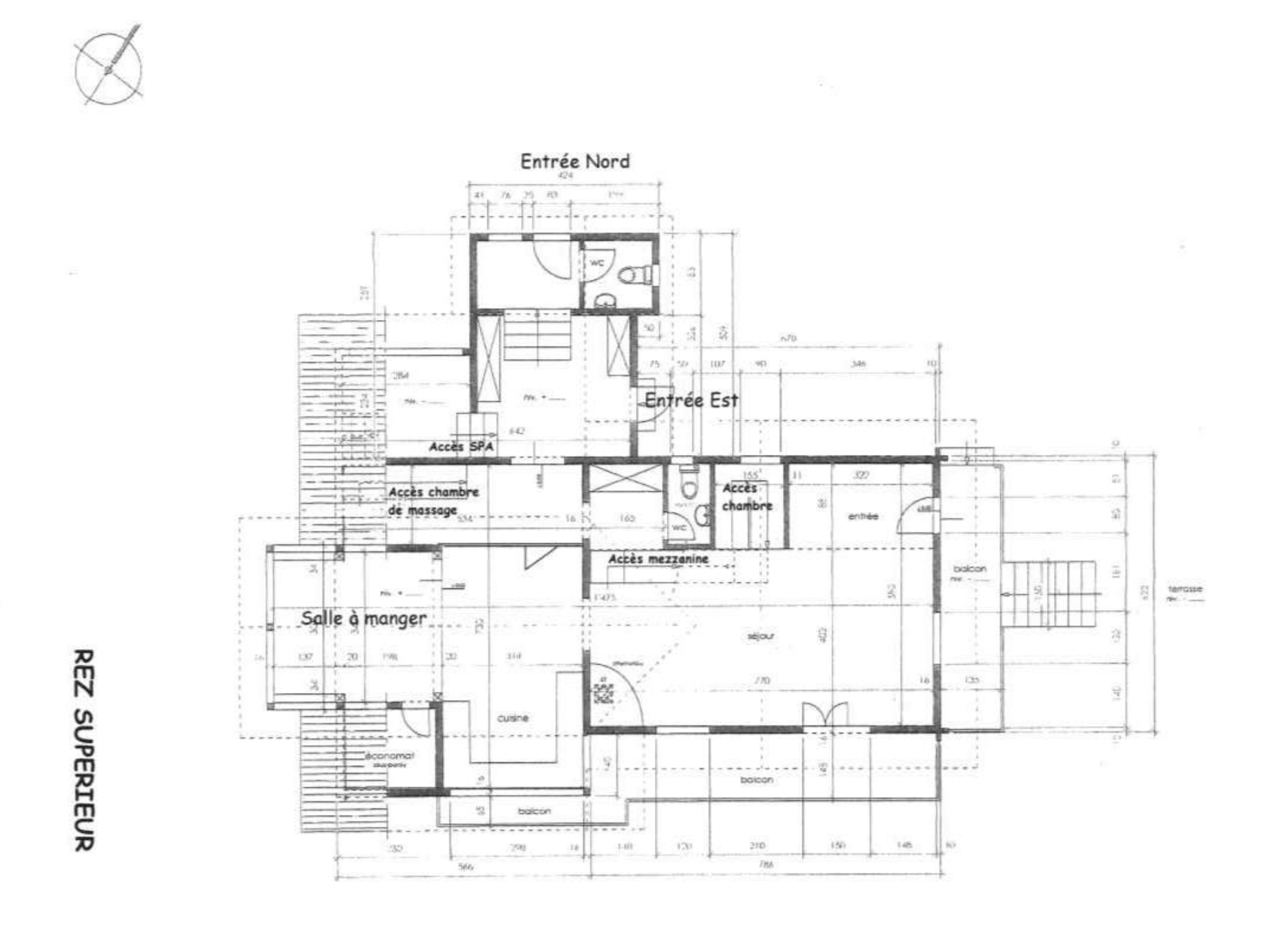 Le chalet est distribué sur trois niveaux avec le niveau principal comportant un vaste séjour avec cheminée offrant de très belles hauteurs sous plafond laissant espace aux poutres apparentes. Il y a un coin bureau dans le séjour et une grande mezzanine pouvant servir d’espace de lecture, salle de musique ou repos. Le salon donne sur une grande cuisine très bien appointée avec un piano Paul Bocuse digne d’une cuisine d’un chef étoilé et une salle à manger attenante permettant d’entretenir les hôtes pendant qu’on cuisine. Deux escaliers desservent l’espace inférieur nuit, comportant trois grandes chambres avec leurs salles de bains et une salle de massage et de traitement. L’espace inférieur conduit au spa et Wellness avec sortie par les baies vitrés sur la terrasse avec jacuzzi. Il y a aussi un large espace buanderie, local technique, cave à vin et deux toilettes visiteurs séparés.